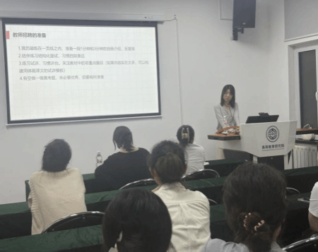 此次分享会,宋美萱老师以自身丰富的招聘经验为依托,为在场学生勾勒出教师求职的清晰路径,从信息获取到流程突破再到准备策略,每一个环节都讲解得细致入微,让学生们对教师招聘有了更全面、更深入的认知,为他们即将开启的教师求职之路注入了一剂“强心针”。