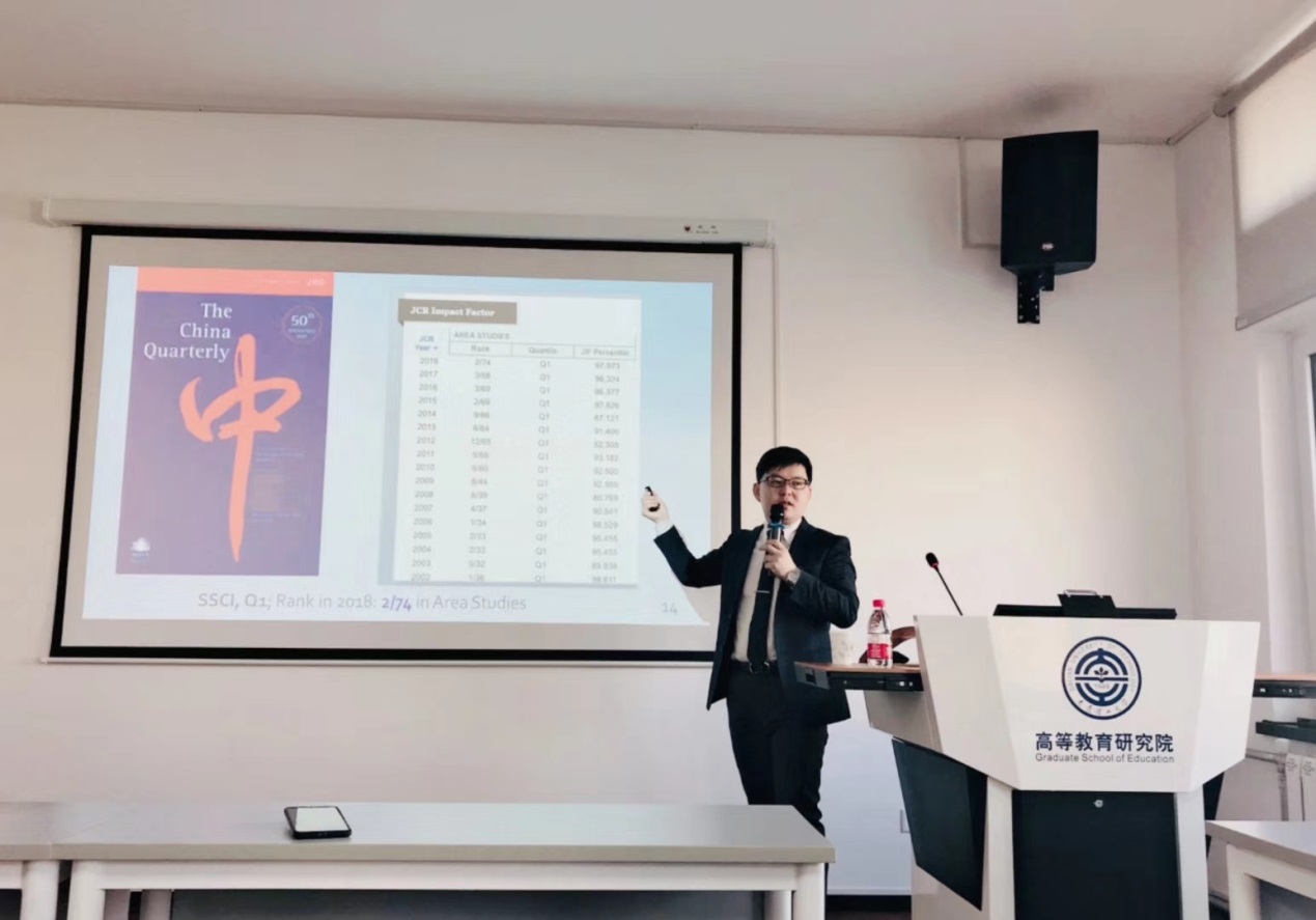 李双龙副教授分别从如何新颖的选题、如何规范化地写作、如何策略性地选择适宜的SSCI期刊投稿和积极理性地回应审稿人的评审意见等议题展开。座谈伊始,双龙老师风趣幽默的开场使得讲座在热情洋溢的氛围中拉开了序幕。