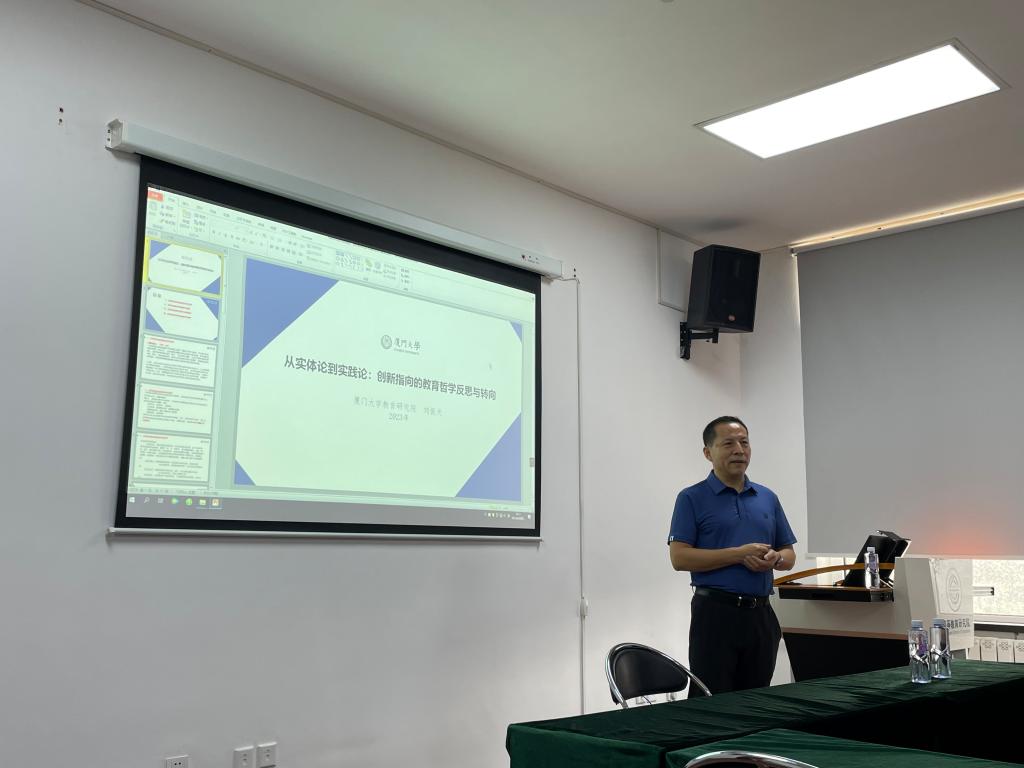 9月5日下午,厦门大学教育研究院党委书记刘振天教授莅临我院,在厚民楼422会议室作了题为“从实体论到实践论:创新指向下教育哲学基础反思与重构”的精彩讲座。本次讲座由我院院长李枭鹰教授主持,我院名誉院长张德祥教授等多位教师以及50余名研究生参加了讲座。