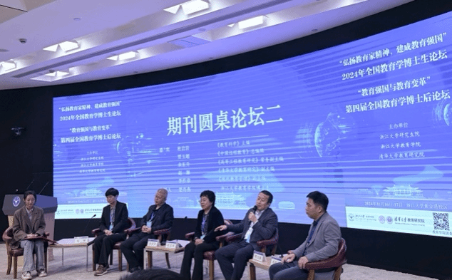 主旨报告环节中,浙江大学陈时见教授、宁波大学刘希伟副院长、清华大学石中英教授及湖南师范大学刘铁芳教授,围绕教育强国背景下的教师教育、博士生读博体验、教育观念以及教育哲学等议题展开了深入的探讨。期刊圆桌论坛环节中,国内9家教育学高水平期刊的负责人分组别开展了两次期刊圆桌论坛,向参会博士生讲解了期刊用稿的质量要求、选题取向、发稿机制等。
