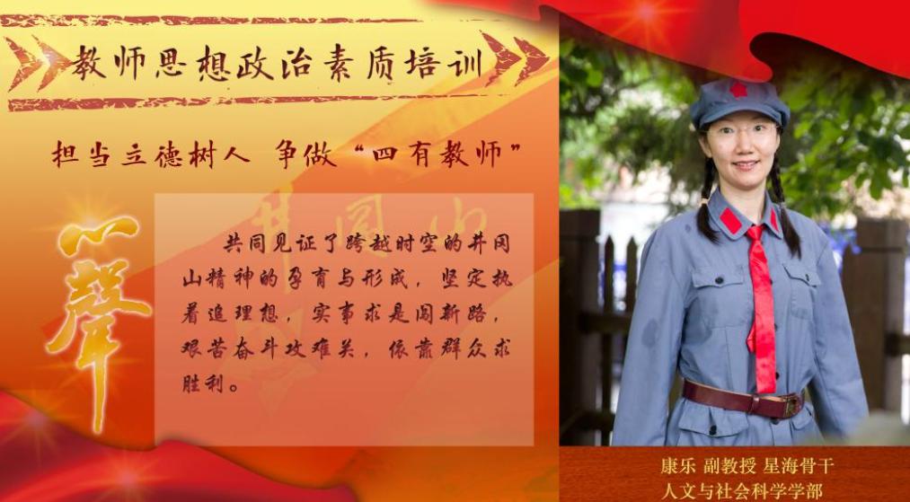 2017年7月4日,培训班交流汇报暨结业仪式在主楼报告厅举行,康乐副教授作为学员代表,向校党委书记王寒松,校党委副书记、纪委书记李成恩,机关单位负责人、各学部党政负责人、全校骨干教师代表,详细汇报思想政治素质培训的心得体会并作报告《传承井冈山精神的红色基因》。