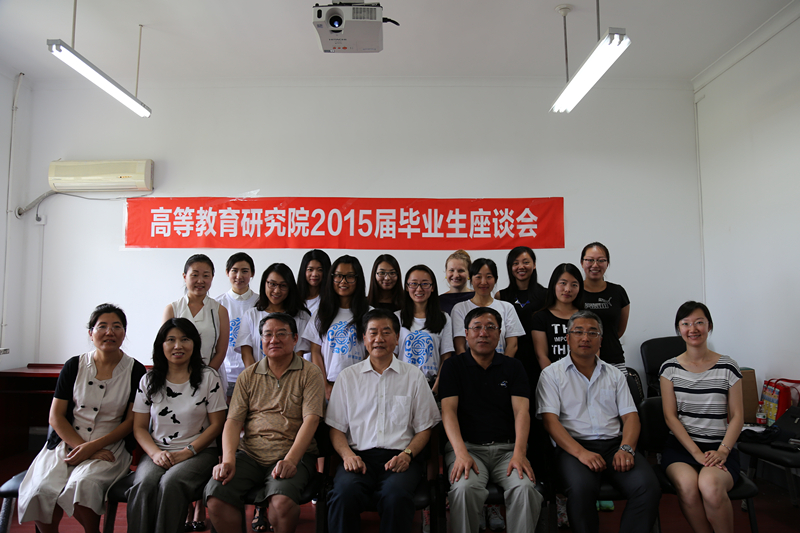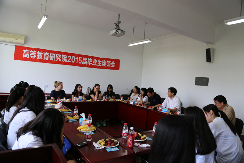 6月26日上午9点半,高等教育研究院2015届毕业生座谈会在文科楼512室召开,我校原党委书记、高等教育研究院院长张德祥教授,副院长迟景明教授、杨连生教授、张秀萍教授、李冲老师、孙阳春老师、康乐老师等参加了此次座谈会。