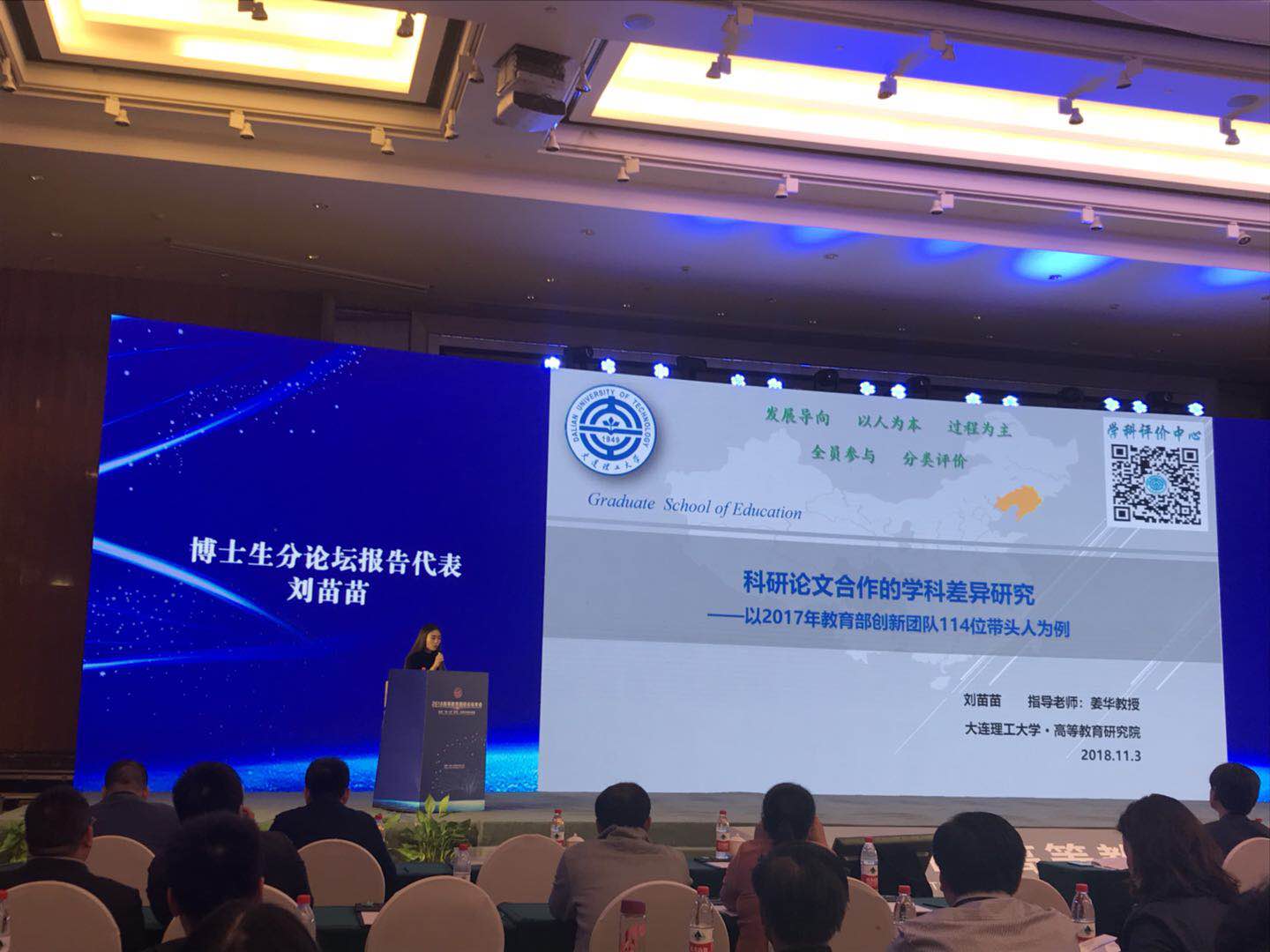 11月2日,我院博士生刘苗苗在博士生论坛上作了题为《科研论文合作的学科差异研究:以2017年教育部创新团队114位带头人为例》的报告,受到点评专家(别敦荣教授、邱均平教授、王建华教授)的一致好评,并被推选为优秀代表之一在博士生论坛闭幕式上发言,展示了我院博士生的学术风采,进一步提高了我院的学术影响力和声誉。