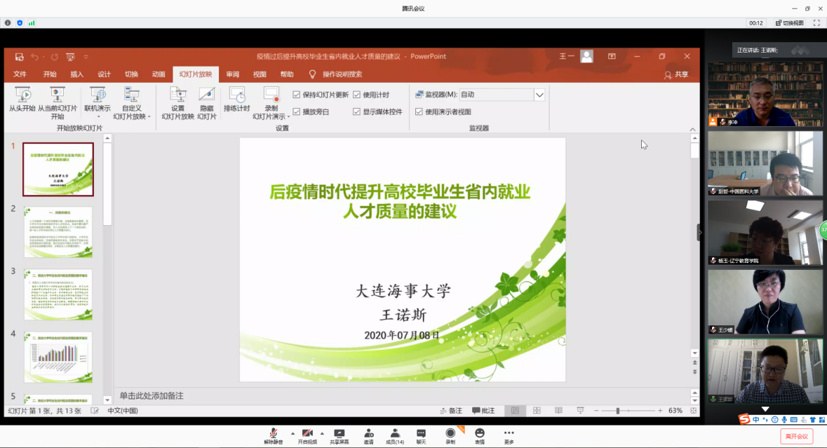 7月15日上午,辽宁省重点新型智库“教育评价与发展战略研究中心”通过腾讯会议在线举行决策咨询工作研讨会。会议由大连理工大学高等教育研究院李冲教授主持。来自辽宁省高校的15位智库专家以及高等教育研究院部分师生参会。