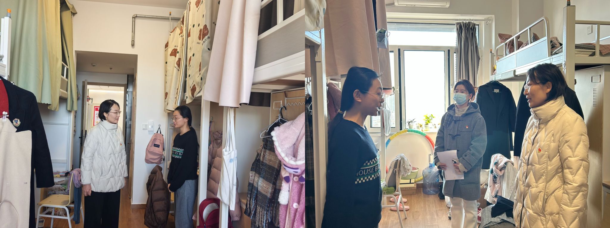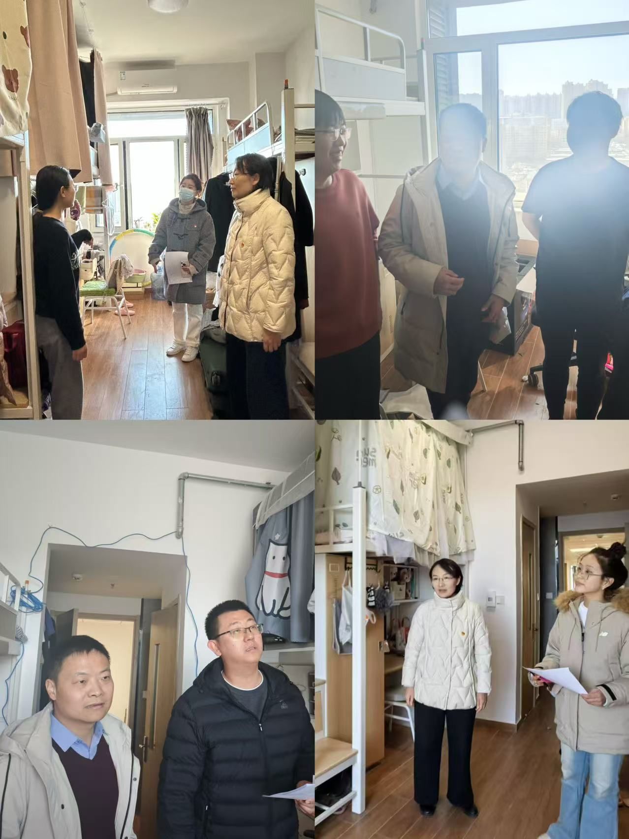 何院长详细询问了同学们的作息时间、学习状况以及在生活中遇到的困难,并结合学生所处年级提出相应的建议。同时,实地察看了学生寝室的床铺被褥、保暖设备、墙面地面、卫生间等基础设施情况,并对学生寝室进行了安全隐患排查,规范学生安全用电。在交流中,何院长特别关注学生的思想动态,鼓励同学们树立积极向上的学习态度,以饱满的热情投入到新学期的学习生活中。