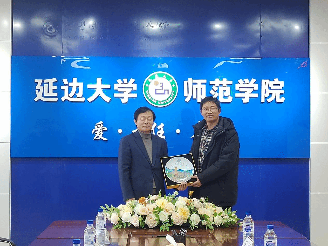 师范学院与我院有着稳定的合作关系,尤其是师范学院作为我院优秀生源基地,为我院输送多名优秀研究生,为表达我院对师范学院的谢意,刘盛博副院长代表我院向师范学院赠送纪念品。